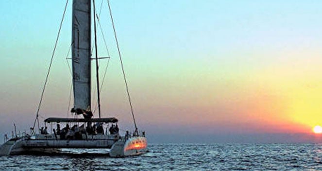 Catch the majestic orange and pink hues of the setting sun during your sail on a 75-foot dual-hulled boat, as you enjoy a light dinner with drinks from an open bar. Learn More >